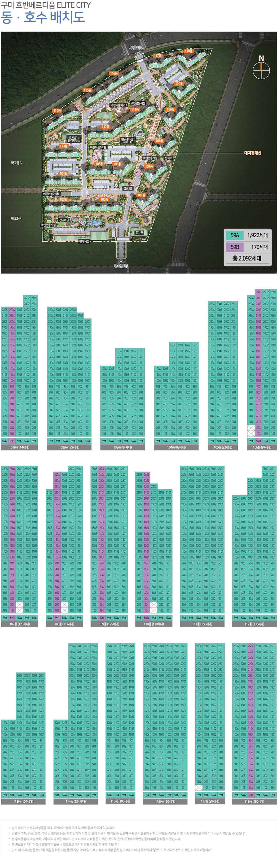 구미 호반베르디움 ELITE CITY 동호수배치도